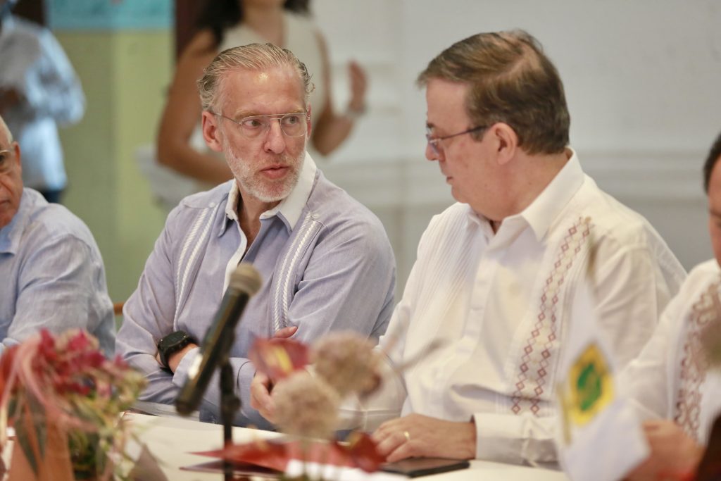 Mérida, Yucatán. — El presidente de la Asociación Mexicana de Secretarios de Desarrollo Económico (AMSDE) y titular de la Secretaría de Desarrollo Sustentable (SEDESU) de Querétaro, Marco Antonio Del Prete Tercero, encabezó un encuentro de trabajo entre los integrantes de la asociación y el secretario de Economía federal, Marcelo Ebrard Casaubón.