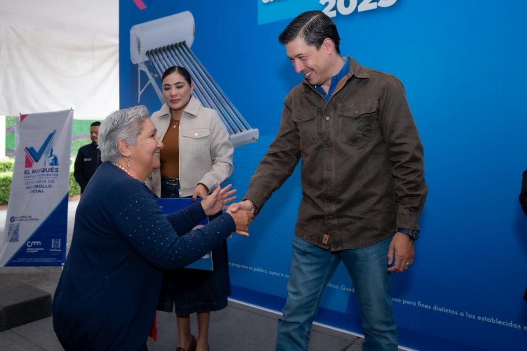 El presidente municipal de El Marqués, Rodrigo Monsalvo Castelán, encabezó la entrega simbólica de 480 calentadores solares como parte del programa “Vivienda Sustentable 2025”, una iniciativa que busca mejorar la calidad de vida de las familias marquesinas y promover el uso de energías limpias.