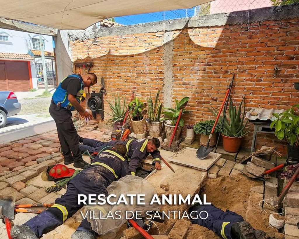 Un emotivo rescate animal 🐈 se llevó a cabo en la colonia Villas de Santiago 📍, donde elementos de Protección Civil Municipal y personal del Cuerpo de Bomberos 🚒 lograron salvar a un gato doméstico que había caído al interior de una cisterna.