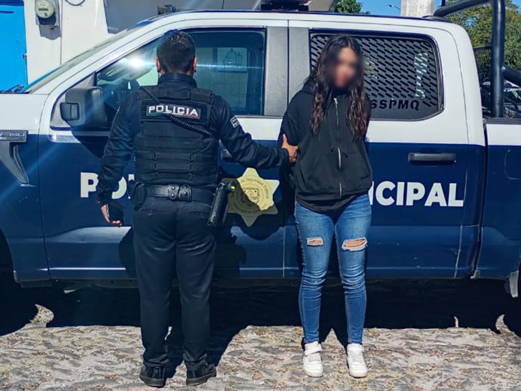 Elementos de la Secretaría de Seguridad Pública Municipal de Querétaro (SSPMQ) detuvieron a una mujer en la colonia Real de España por el delito de portación de armas prohibidas, luego de que se comportara de manera evasiva y tratara de huir al notar la presencia de las patrullas durante un recorrido de vigilancia.