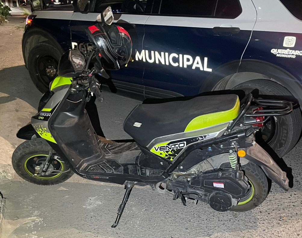 Querétaro, Qro. — Elementos de la Secretaría de Seguridad Pública Municipal de Querétaro (SSPMQ) detuvieron a una joven en la colonia Las Margaritas, luego de ser sorprendida tripulando una motocicleta que contaba con reporte reciente de robo, según Plataforma México.