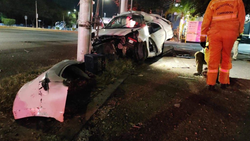 Un aparatoso accidente se registró la madrugada de este 1 de noviembre sobre Paseo Constituyentes, frente a Plaza Constituyentes, donde un hombre perdió el control de su vehículo Nissan March y terminó impactado violentamente contra un poste metálico de alumbrado público.