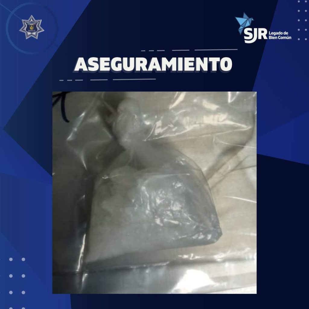Elementos de la Secretaría de Seguridad Pública Municipal de San Juan del Río detuvieron a un masculino por delitos contra la salud, tras una persecución que inició sobre Avenida Gandhi y concluyó en la colonia La Peña.