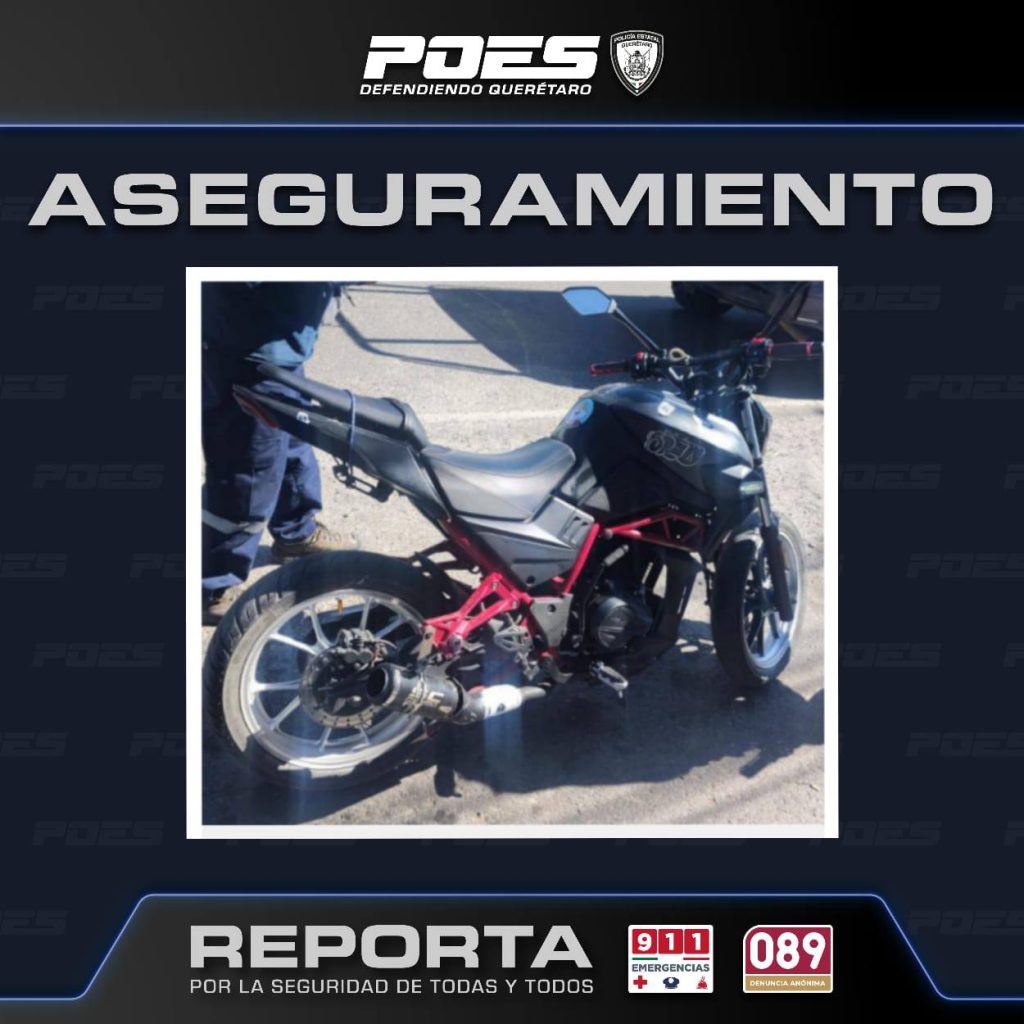 De acuerdo con el reporte oficial, durante los recorridos de prevención y vigilancia en la zona, los policías detectaron una situación irregular que derivó en la verificación del vehículo, confirmándose que la motocicleta contaba con reporte de robo vigente.