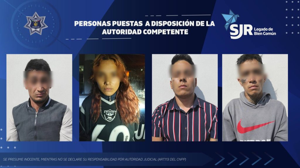Cuatro personas —una mujer y tres hombres— fueron detenidas por su probable participación en un robo con violencia registrado en la colonia Centro de San Juan del Río, donde además lesionaron a la víctima con un arma blanca.