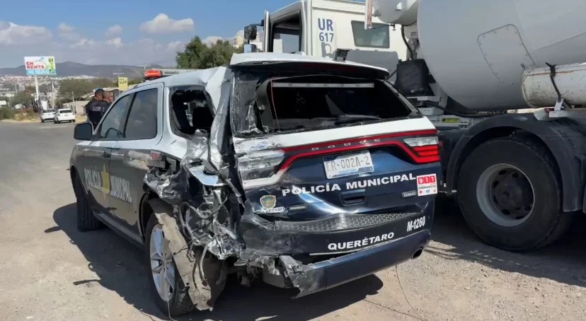 De manera paralela, mientras se realizaban las diligencias en los carriles centrales de Paseo de la República, una patrulla que había participado en la persecución permanecía detenida en el carril de extrema derecha, cuando un camión tipo tolva la impactó por la parte trasera, proyectando la unidad oficial varios metros.