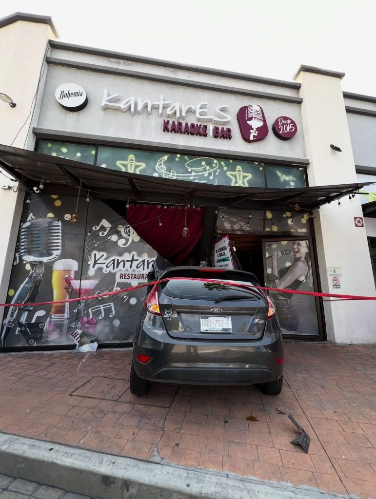📍 Querétaro, Col. Álamos. Tremendo susto se vivió en la avenida Corregidora Norte cuando un automóvil Ford terminó incrustado en la fachada del restaurante-bar Kantares, luego de que el conductor presuntamente confundiera el acelerador con el freno.