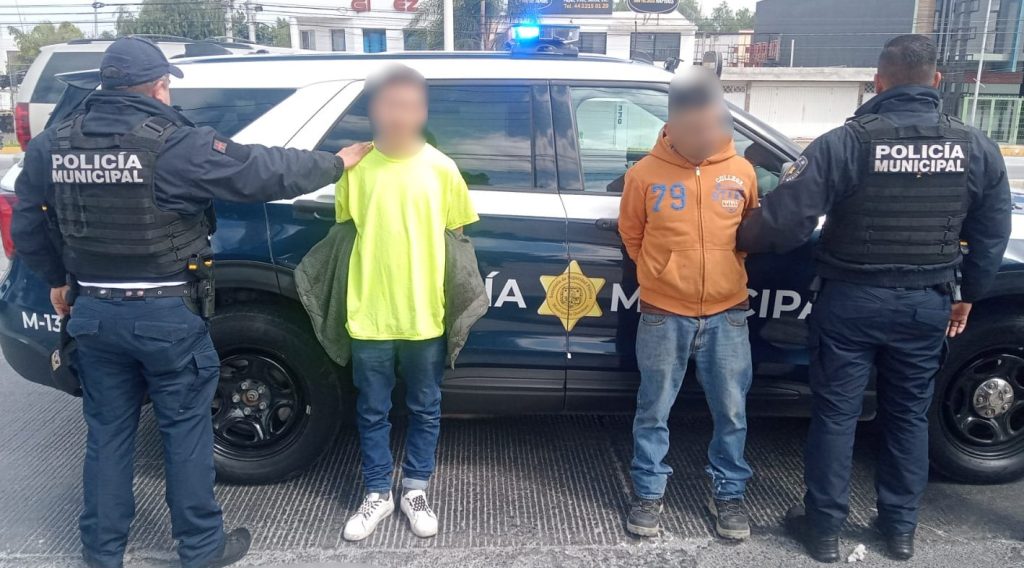 Elementos de la Secretaría de Seguridad Pública Municipal de Querétaro (SSPMQ) detuvieron a dos masculinos por el delito de robo equiparado de vehículo, además de uso indebido de condecoraciones, en hechos registrados sobre la carretera camino a Tlacote, a la altura de Galindas.