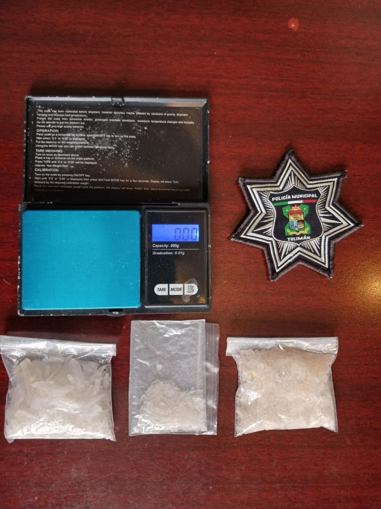 Como resultado de los operativos permanentes de seguridad y vigilancia, elementos de la Secretaría de Seguridad Pública, Tránsito y Protección Civil aseguraron a un masculino que se encontraba en posesión de una sustancia con características similares al cristal.
