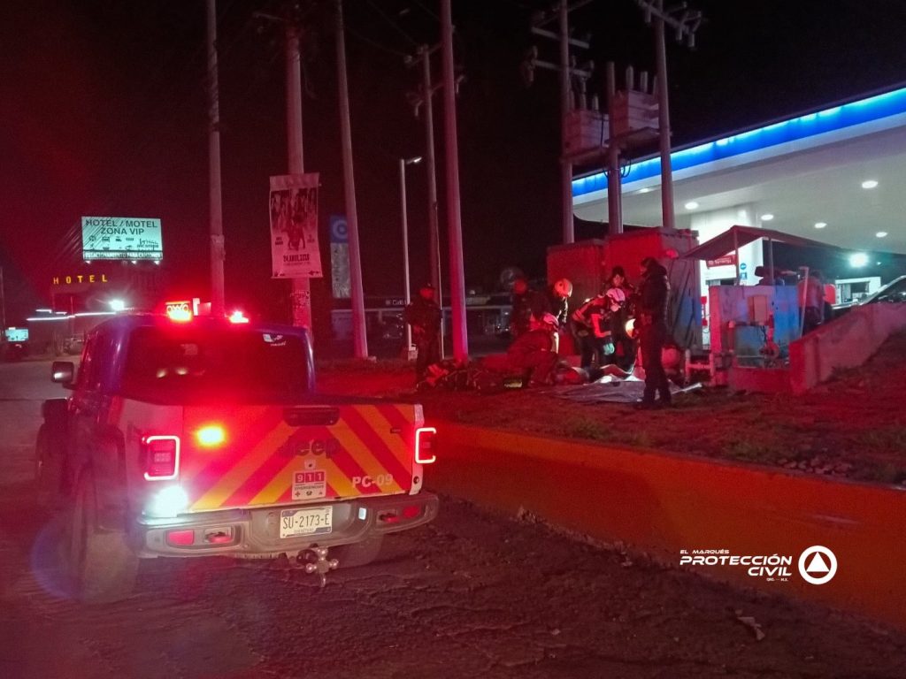 Elementos de Protección Civil del municipio de El Marqués atendieron durante la madrugada el reporte de una persona que cayó al interior de una cisterna sobre la autopista federal 57, a la altura de la gasolinera La Noria.