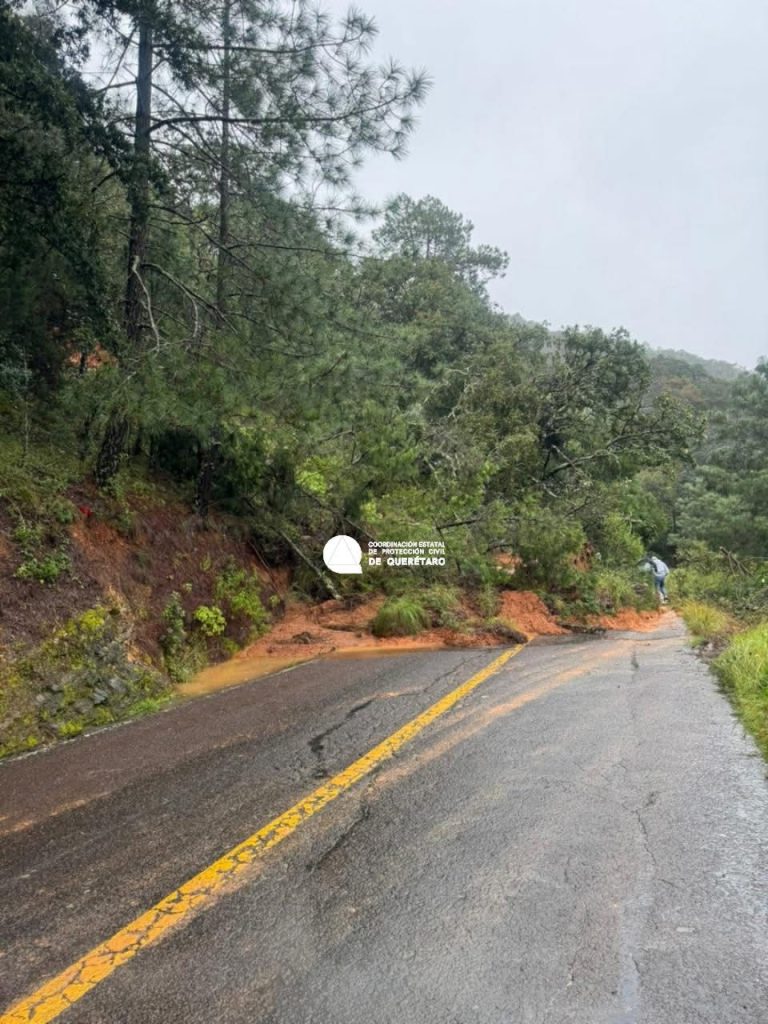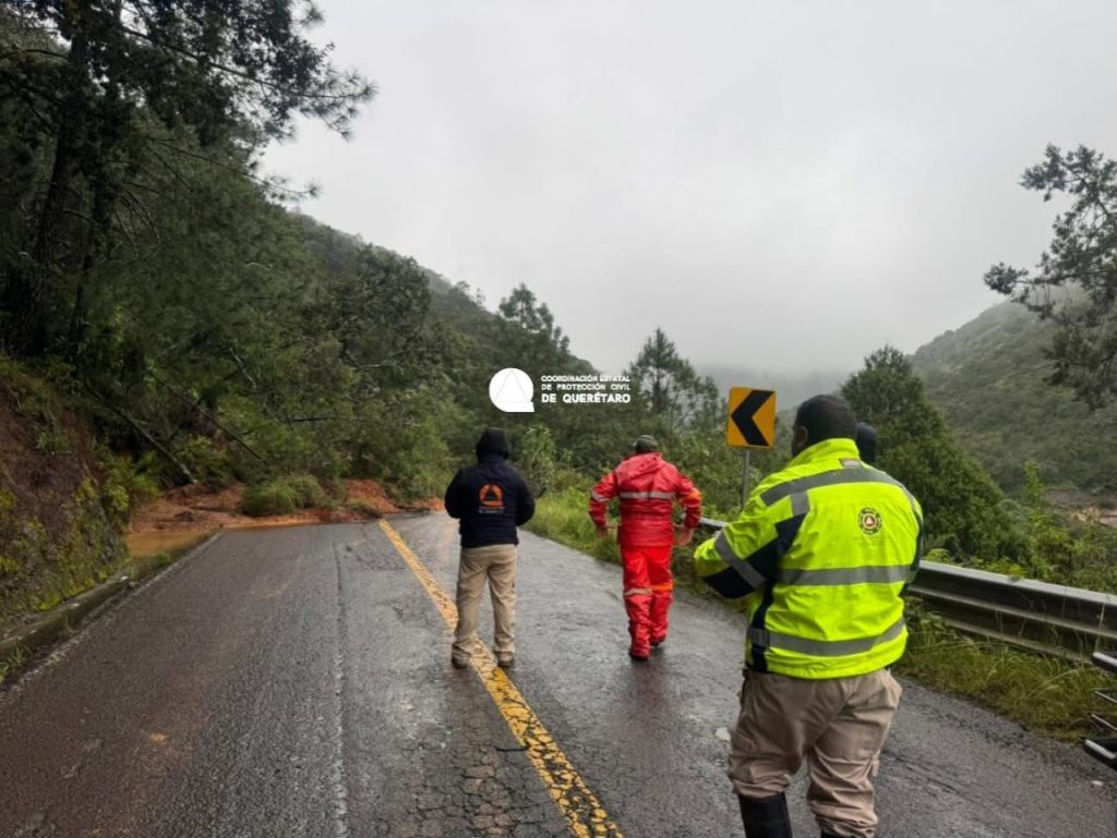La Coordinación Estatal de Protección Civil de Querétaro, junto con autoridades municipales de San Joaquín, se encuentran en el lugar realizando labores de evaluación de riesgos y trabajos para liberar la vía de manera segura. 👷🦺