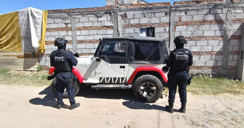 En respuesta, elementos de la Comisaría Regional III de las FSPE realizaron un recorrido de búsqueda que culminó con la localización de un Jeep Wrangler blanco sobre la calle Loma Linda, el cual coincidía con el vehículo reportado como robado.