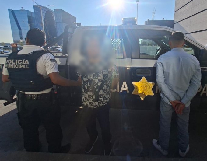 Elementos de la Secretaría de Seguridad Pública Municipal de Querétaro (SSPMQ) detuvieron a dos hombres por el delito de robo a comercio en modalidad de fardería, en inmediaciones de la colonia Jurica.