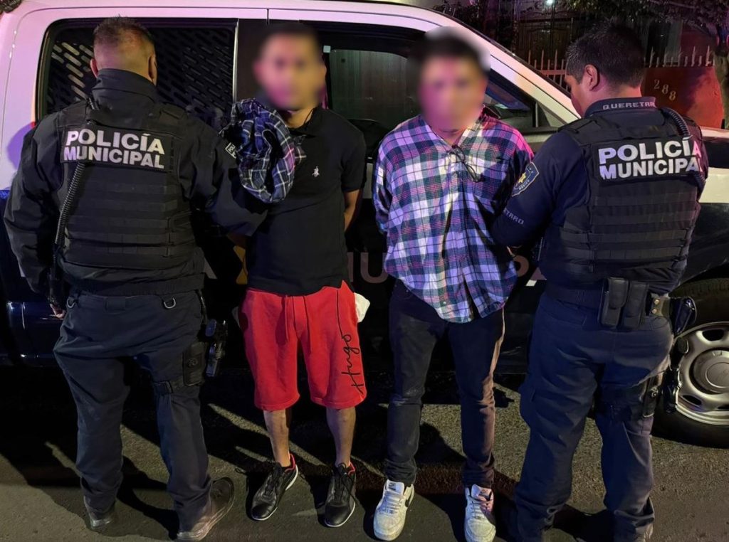 Elementos de la Secretaría de Seguridad Pública Municipal de Querétaro (SSPMQ) detuvieron a dos hombres por delitos contra la seguridad pública en inmediaciones de la colonia Pathé, tras una intervención derivada de un reporte recibido a través del Centro de Atención a Emergencias 9-1-1.