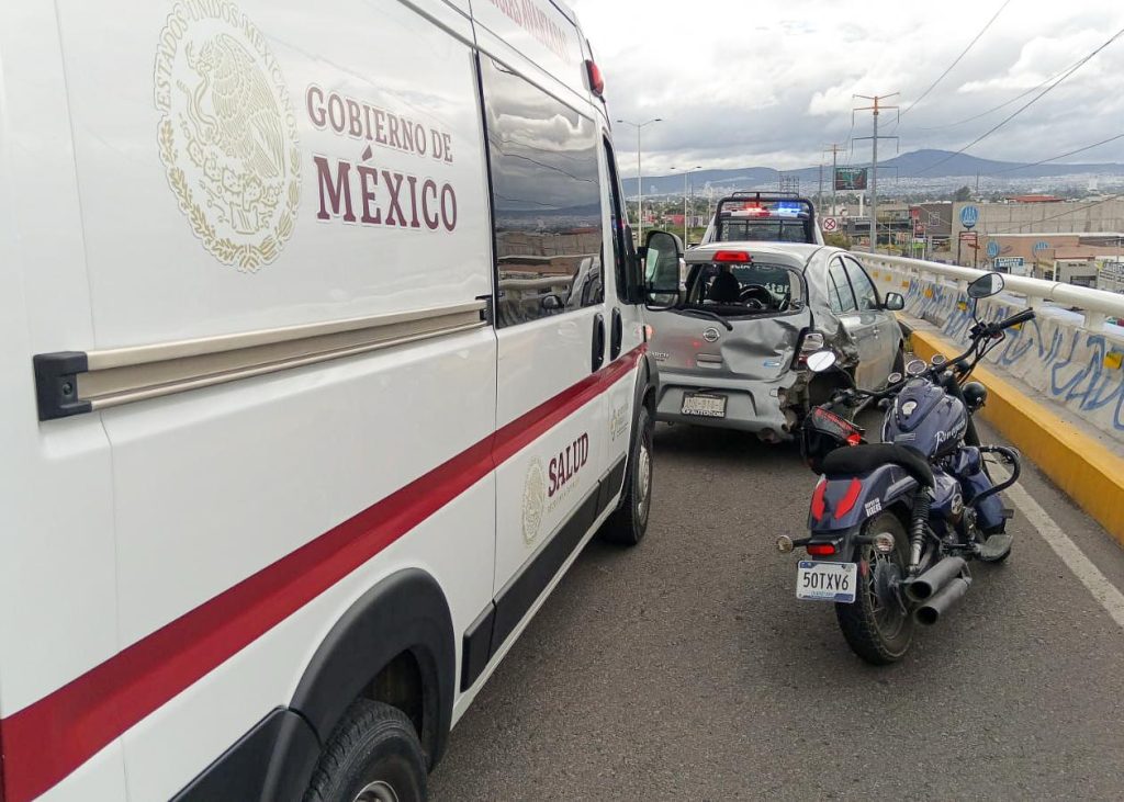 🚨 Choque en moto sobre Prol. Bernardo Quintana: dos lesionados tras impactarse contra un automóvil 🛵💥🚗