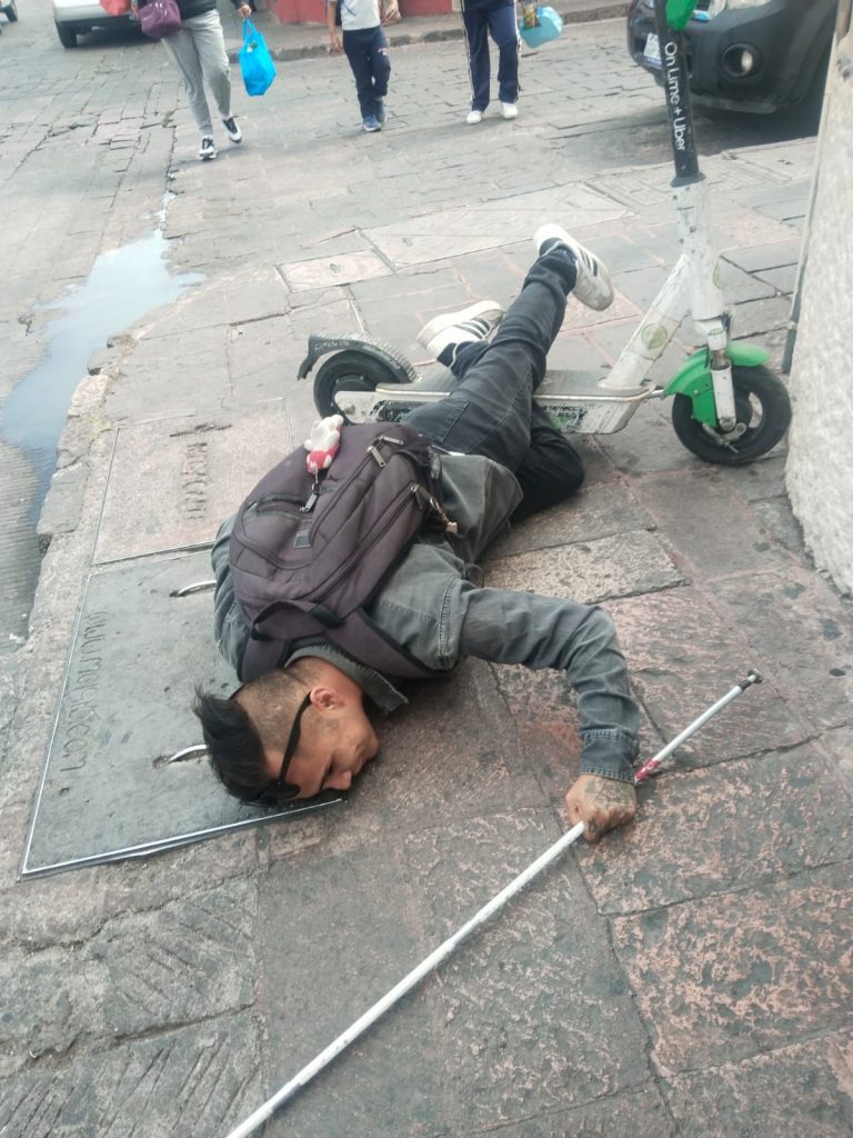 🚨 Investigan scooter mal estacionado que provocó caída de persona con discapacidad visual en el Centro de Querétaro 🛴⚠️