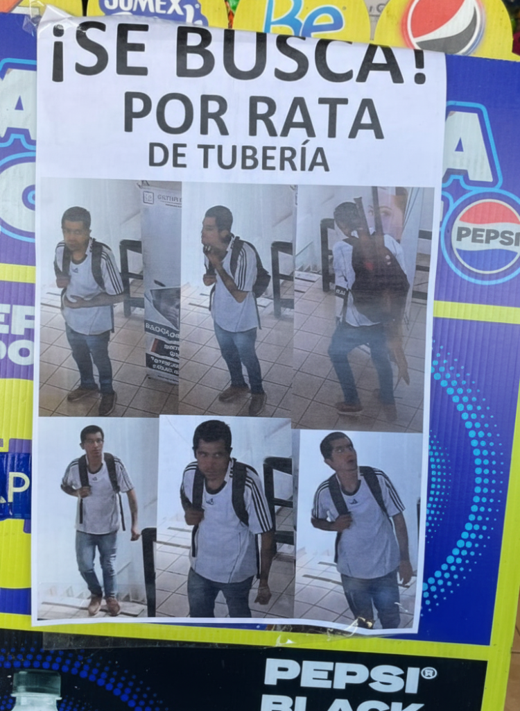 Ante la falta de respuesta inmediata, comerciantes y vecinos decidieron colocar fotografías del presunto ladrón en negocios cercanos, como medida de alerta y prevención comunitaria.