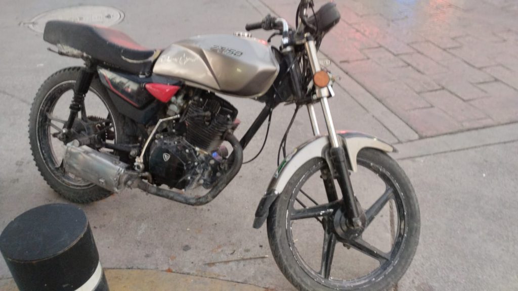 De acuerdo con la información oficial, los hechos ocurrieron mientras policías realizaban recorridos preventivos en la zona centro, donde detectaron a un sujeto circulando en motocicleta sin casco de seguridad y sin placa de circulación, lo que constituye una infracción al reglamento de tránsito.