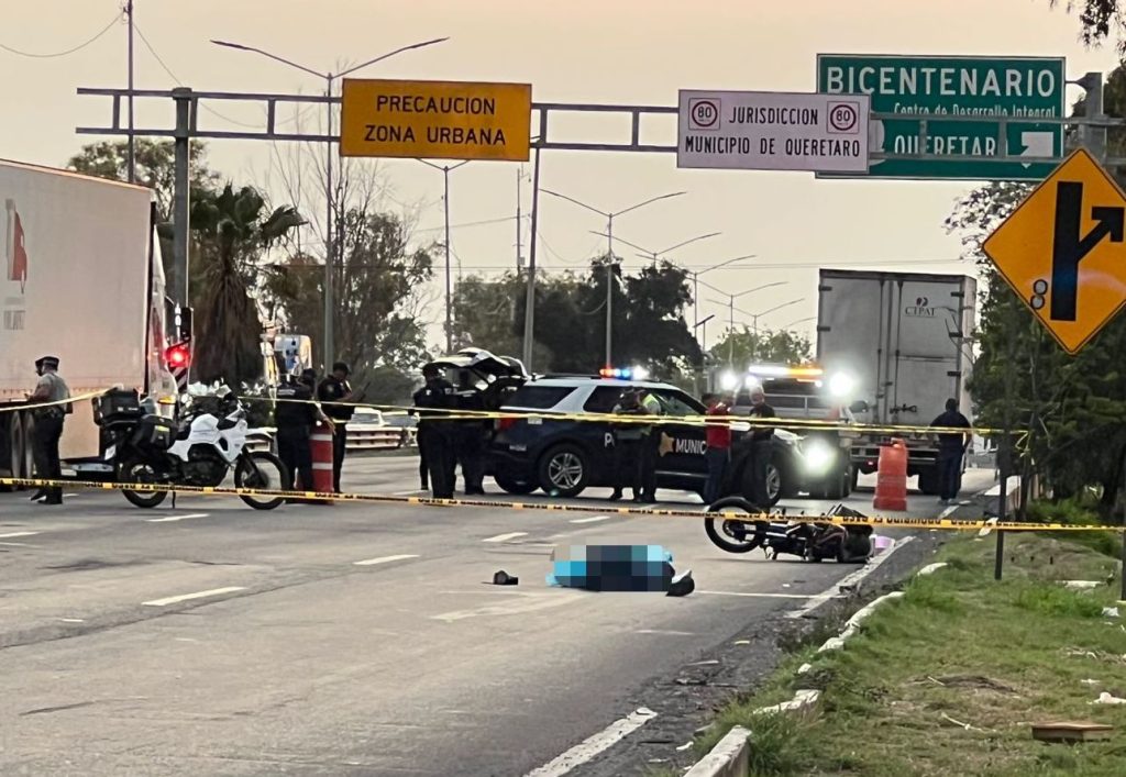 La tarde de este viernes, un motociclista perdió la vida tras ser arrollado por un tráiler en los carriles centrales de la carretera federal 57, a la altura del kilómetro 211, en dirección hacia 5 de Febrero, dentro de la zona metropolitana de Querétaro.
