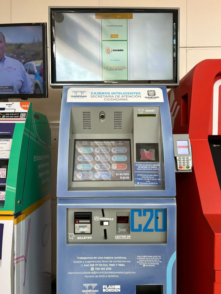 Querétaro, Qro.— La administración municipal encabezada por Felifer Macías ha logrado incrementar de manera significativa la atención a la ciudadanía mediante el uso de cajeros inteligentes, al registrar un aumento de hasta 450 por ciento en los servicios ofrecidos en comparación con el trienio anterior.