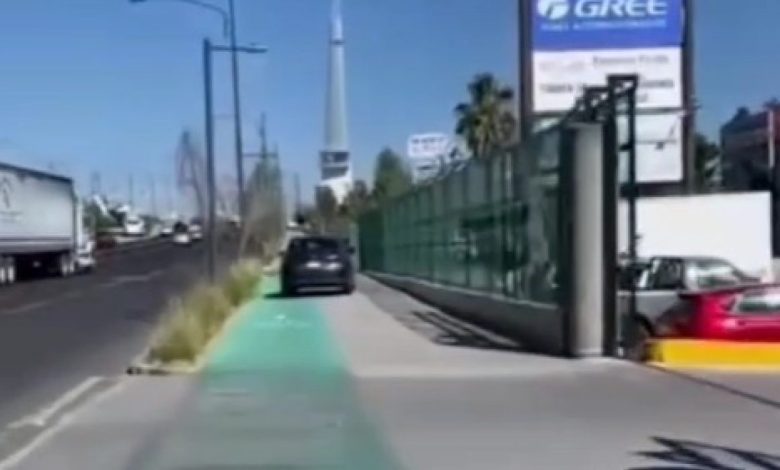Un automovilista fue captado en video mientras circulaba sobre la banqueta y la ciclovía de Avenida Paseo 5 de Febrero,