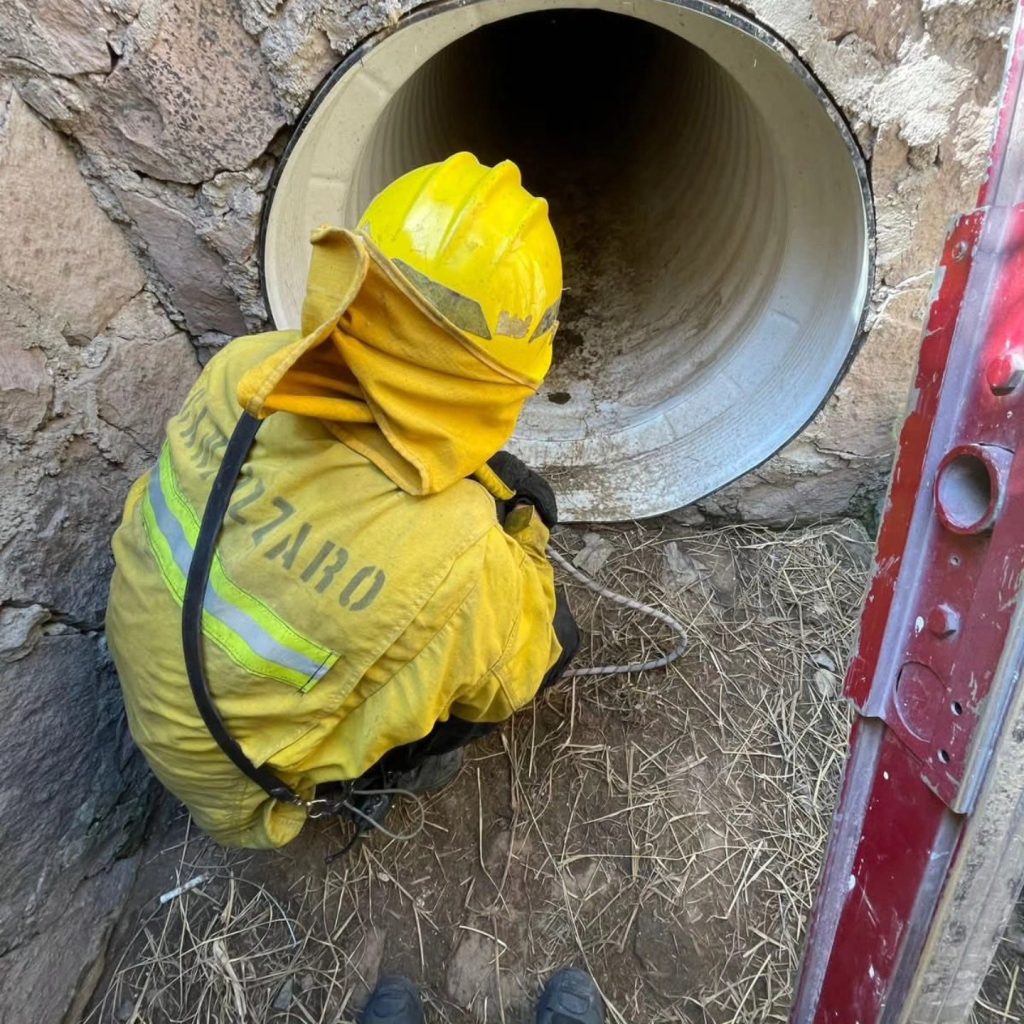 De acuerdo con la información oficial, el reporte fue recibido a través de la línea de emergencias, lo que permitió la movilización inmediata del personal al sitio. Una vez en el lugar, los bomberos llevaron a cabo maniobras especializadas para lograr la extracción segura del animal.