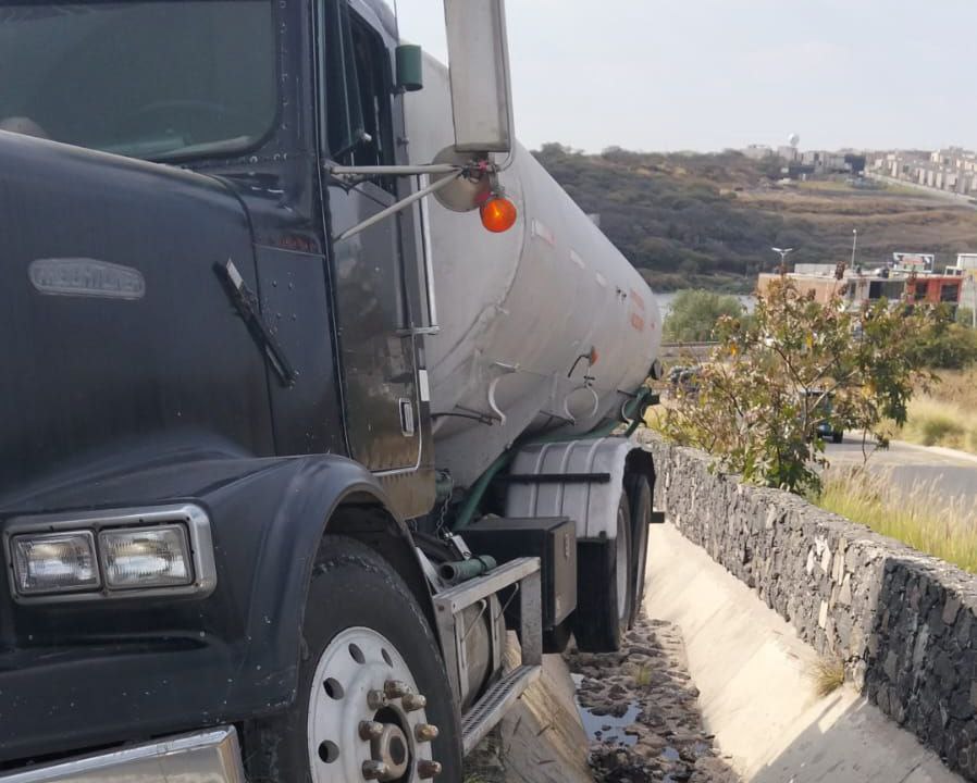 Querétaro, Qro.— Un accidente vial protagonizado por una pipa se registró en la colonia Juriquilla, luego de que el vehículo saliera del camino por causas que aún no han sido precisadas por la autoridad.