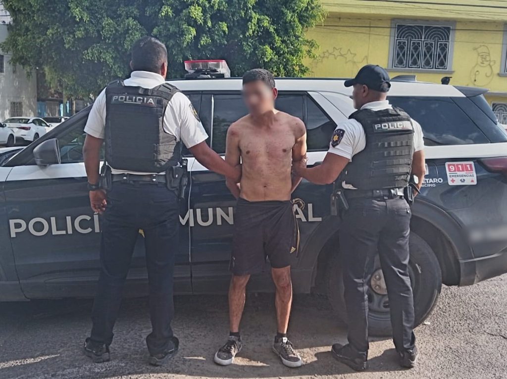 Querétaro, Qro.— Elementos de la Secretaría de Seguridad Pública Municipal de Querétaro (SSPMQ) detuvieron a un masculino señalado como probable responsable de agredir físicamente a una mujer en la colonia Ricardo Flores Magón.